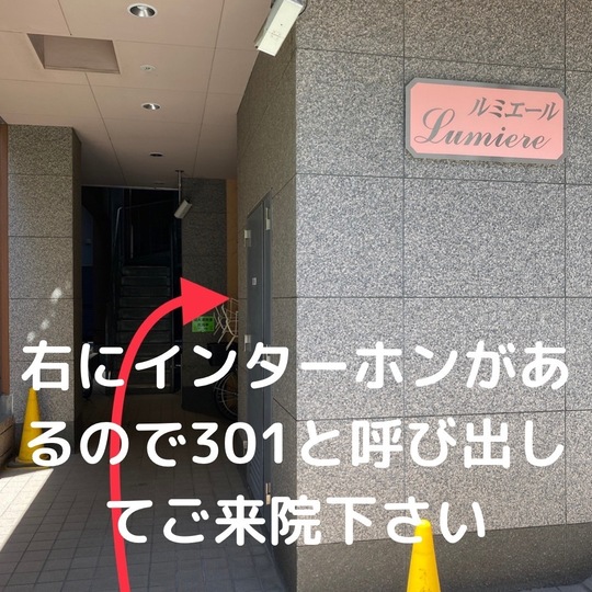 当院の入り口がオートロックの為、建物に着きましたらインターホンから301と呼び出して下さい。